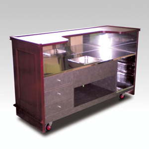 ・サイズ:W1600×D600×H1100mm ・キャスターサイズ:100φ 自在キャスター4輪 ・本体:サクラ材塗装 ・内装:ステンレスインク付き ・販売価格:\504,400 (消費税は別途)