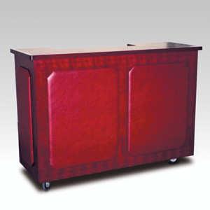 ・サイズ:W1600×D600×H1100mm ・キャスターサイズ:100φ 自在キャスター4輪 ・本体:サクラ材塗装 3面ビニールレザー ・天板:メラミン化粧板 ・内部:ステンレス張り ・シンク1個付 ・販売価格:\507,000 (消費税は別途)
