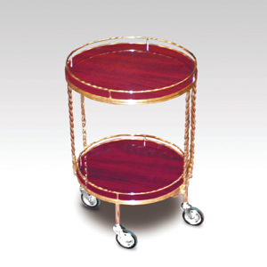 ・サイズ:450φ×H650mm ・キャスターサイズ:75φ 自在キャスター4輪 ゴールドメッキ ・本体:スチールゴールドメッキ ・天板:メラミン化粧板 ・ランカン ・販売価格:\254,000 (消費税は別途)