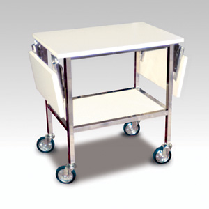 ・サイズ:W1200×D450×H720mm (W800×D450×H720mm) ・キャスターサイズ:100φ 自在キャスター4輪 ・本体:ステンレス/メラミン化粧板 ・販売価格:\280,000 (消費税は別途)