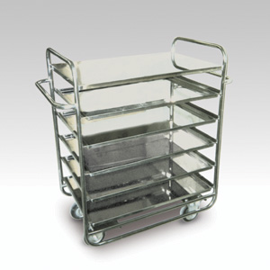 ・サイズ:W1020×D550×H1090mm ・キャスターサイズ:130φ 固定キャスター2輪 自在キャスター2輪 ・ステンレスパイプ ・5段トリー付取り外し可 ・販売価格:\215,000 (消費税は別途)