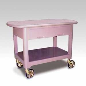 ・サイズ:W900×D500×H750mm ・キャスターサイズ:130φ 自在キャスター4輪 ゴールドメッキ ・天板:メラミン化粧板 ・引出し2個 ・販売価格:\485,500 (消費税は別途)