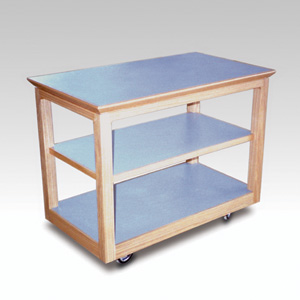 ・サイズ:W800×D500×H750mm ・キャスターサイズ:100φ 自在キャスター4輪 ・本体:タモ材塗装 ・天板:メラミン化粧板 ・販売価格:\158,600 (消費税は別途)