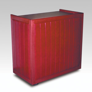 ・サイズ:W1200×D550×H970mm ・キャスターサイズ:100φ 自在キャスター4輪 ・本体:サクラ材塗装 外装レザー張り ・天板:メラミン化粧板 ・販売価格:\260,000 (消費税は別途)