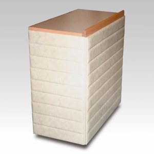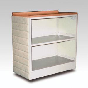・サイズ:W900×D480×H970mm ・キャスターサイズ:100φ 自在キャスター4輪 ・本体:スチール焼付塗装 ・3面ビニールレザー張り ・販売価格:\156,000 (消費税は別途)