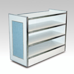 ・サイズ:W900×D530×H1000mm ・キャスターサイズ:125φ 自在キャスター2輪 固定キャスター2輪 ・天板/本体:メラミン化粧板 ステンレスエッジ ・販売価格:\468,000 (消費税は別途)