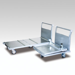 ・サイズ:W1635×D750×H850mm (折畳収納時:W850×D750×H850mm) ・キャスターサイズ:150φ 自在キャスター3輪 固定キャスター2輪 ・本体:スチール焼付塗装 ・販売価格:\117,000 (消費税は別途)