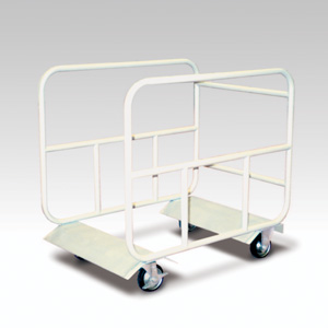 ・サイズはターンテーブルに 合わせてお作り致します。 (注)エレベーター間口寸法に ご注意ください。 自在キャスター2輪 ストッパー付キャスター2輪 ・本体:スチール焼付塗装 ・パンシカーペット張り ・10台積み ・販売価格:\130,000 (消費税は別途)