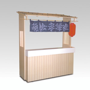 ・サイズ:W1800×D800×H2100mm ・本体:メラミン化粧板 ・のれん付 ・カウンター付 ・ちょうちん付 ・販売価格:\420,000 (消費税は別途)